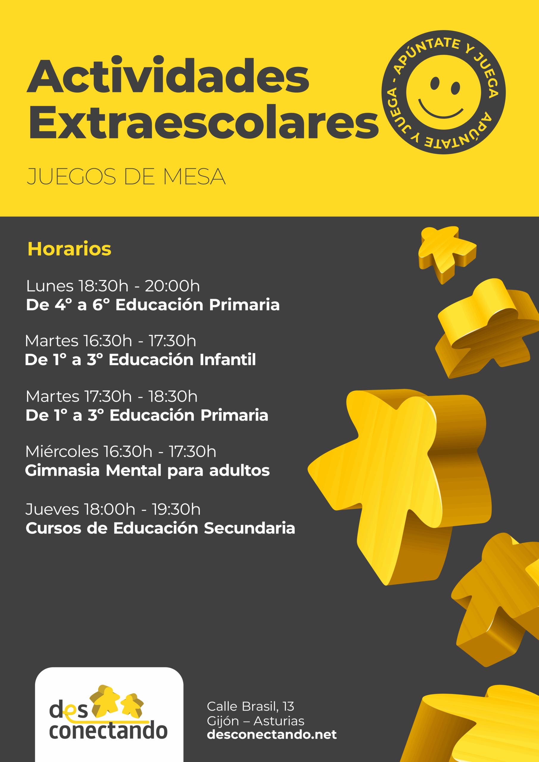 - Talleres de Aprendizaje Basado en Juegos (ABJ): Una manera innovadora y entretenida de aprender, donde el alumnado desarrollará habilidades clave a través del juego. Desde estrategias y lógica hasta colaboración y creatividad, estos talleres están diseñados para que todos aprendan mientras se divierten.